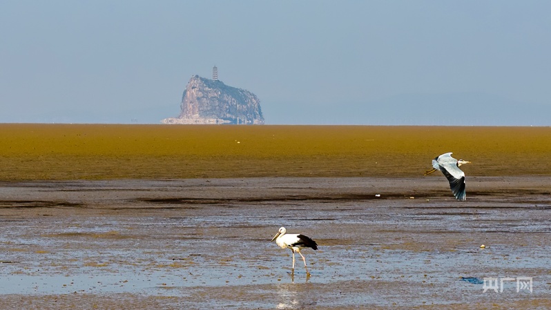 江西鄱阳湖湖口鞋山水域湿地拍摄的东方白鹳(央广网发 李学华 摄)