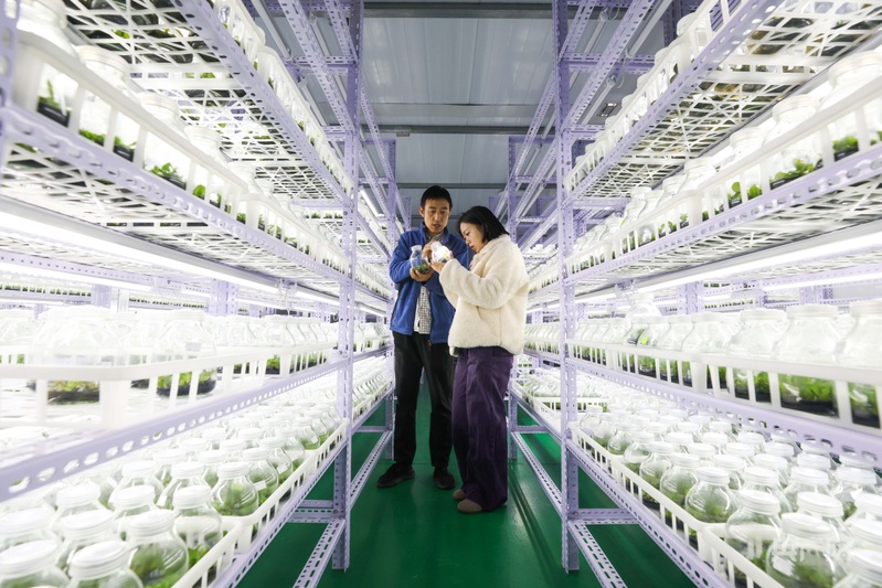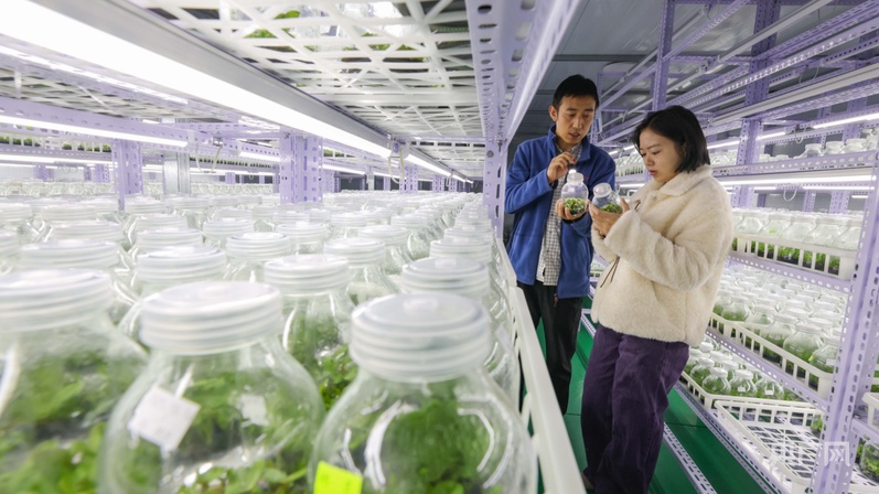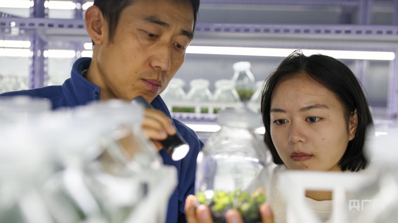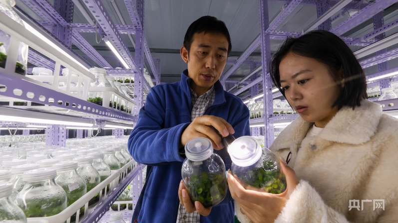工作人员采用无性繁殖技术培育蝴蝶兰幼苗(央广网发 韩俊烜 摄)